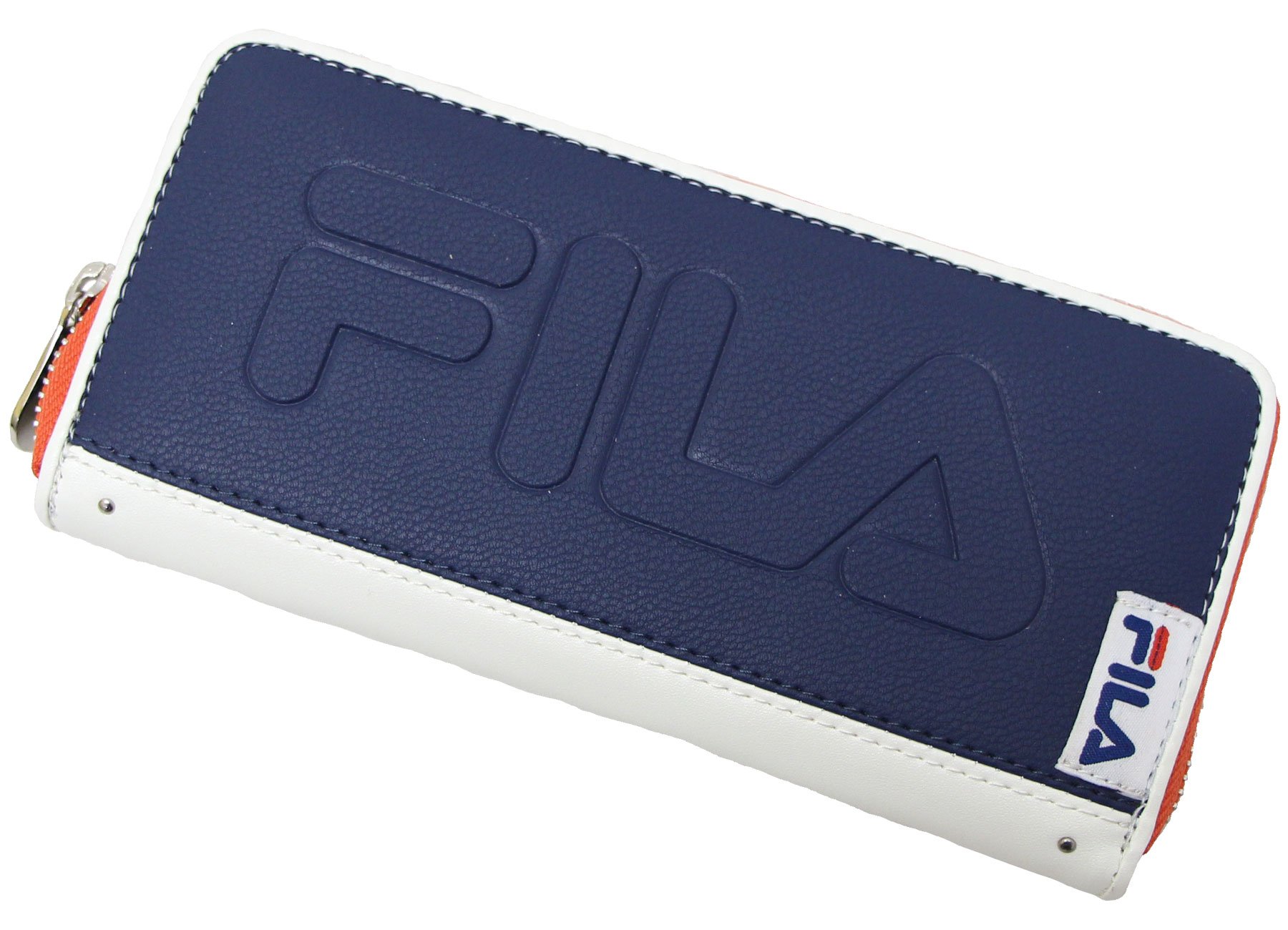 It is a long wallet which embossed with a logo embossed using a soft synthetic leather.