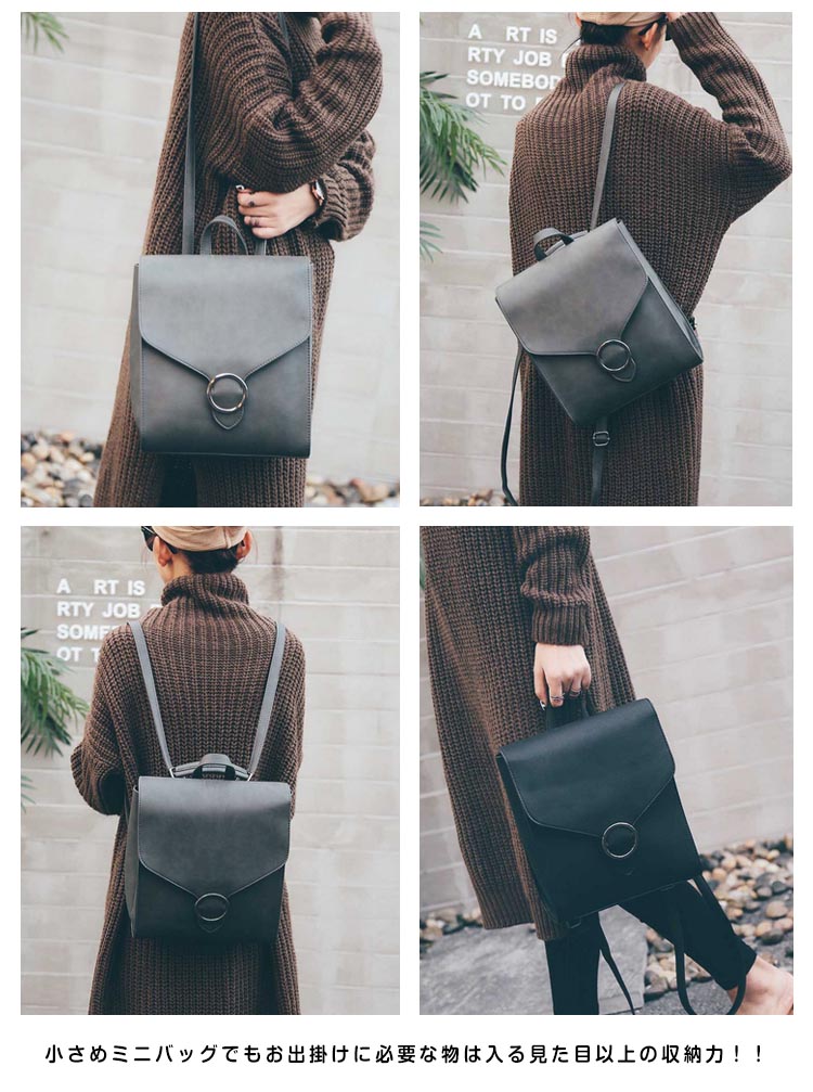| 全4色。大カワイイ合皮ミニリュックサックが登場。流行りの森ガール・山ガールにピッタリ★リュックと斜めがけとショルダーの3wayになって使いやすさも◎小さめミニバッグでもお出掛けに必要な物は入る見た目以上の収納力!!毎日のおしゃれにはもちろん!通勤・通学に、デートやちょっとしたお出かけまでずっと使い続けたい、飽きの来ないバッグ♪ | |