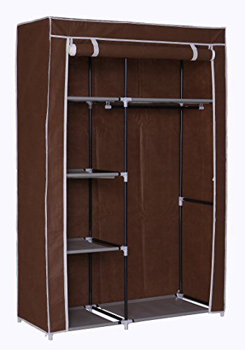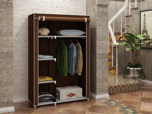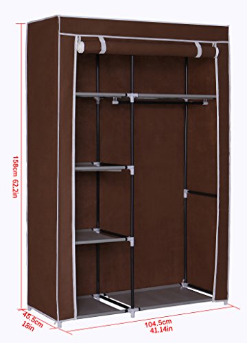 MULSH Closet Wardrobe Portable Clothes Storage Organizer with Metal Shelves and Dustproof Non-woven Fabric Cover in Brown,104.5x45.5x158cm(WxDxH)