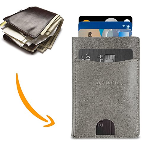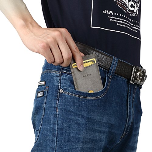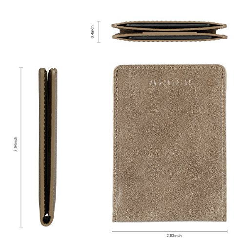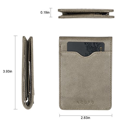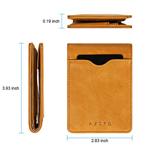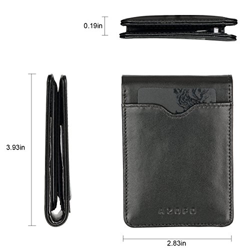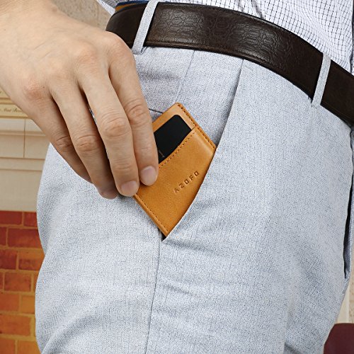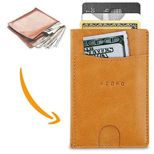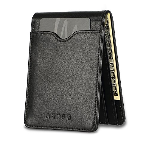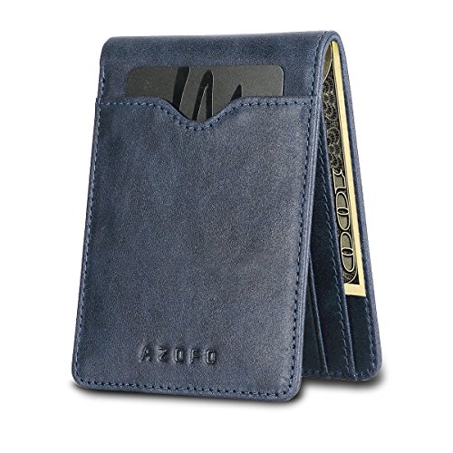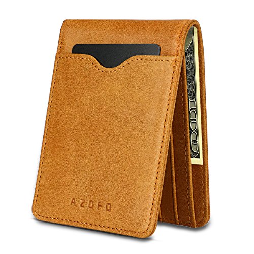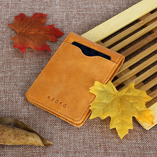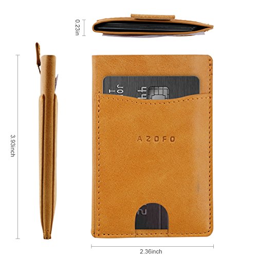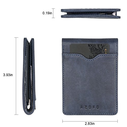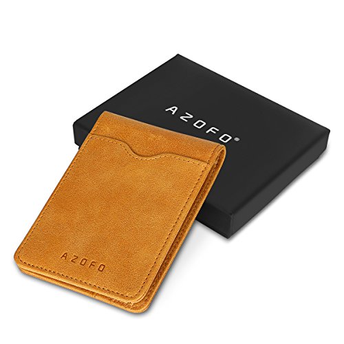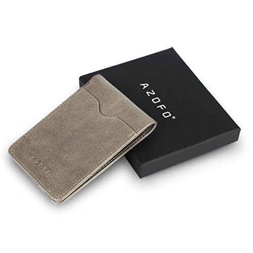 Package 1 new wallet in exquisite gift package. Dimension: 3.9 x 2.6 x 0.1 inches. Weight: 16 GR AZOFO Minimalist Handcrafted Genuine Cowhide Leather Front Pocket Wallet 1, AZOFO ultra slim handcrafted genuine cowhide leather wallet comfortably carries your business cards, credit and debit cards, driver's license etc. 2, The smart pull-tab for easy and instant access to your most used card. 3, The RFID blocking protect your valuable information from unauthorized scans. Keep your ID card and credit/debit card safe. 4, No more overstuffed jeans. No more unsightly bulge in your pants. Just a super sleek fashion accessory that makes everything easier. RFID Blocking Protection RFID technology make it easy to handle everyday expenses on the go.Keep your ID card and credit/debit card safe. The Best Way to Protect Your Smart Cards from unwanted capture of data such as - Debit or Credit Cards - Enhanced Drivers License - Protects against access by NFC-equipped Smartphones Designed for Men and Women - True Unisex Available in a variety of colors, the slim leather wallet is suitable for men and women. Choose your favorite color, then stash it in your pocket or purse. Its slim design makes it ready to go, no matter the occasion. It will be a good accessory for your daily life, travel and business situation. Careful Maintenance Keeping your AZOFO wallet beautiful is easy! Clean your wallet with lukewarm water and mild soap or natural leather wax, oil and balm. Customer Service Have questions about your case, your warranty or our products. Reach out to our customer service team for help.