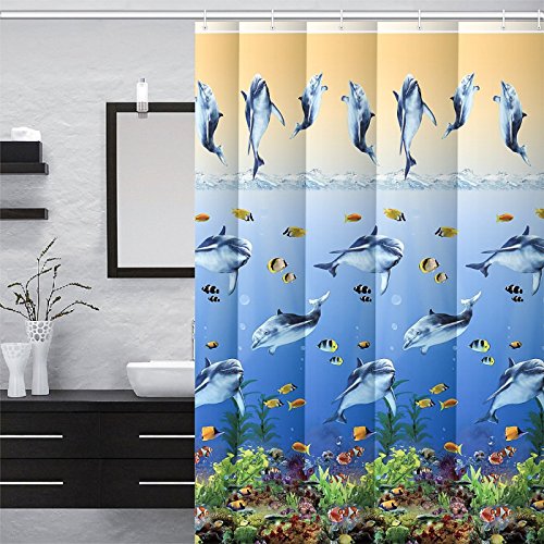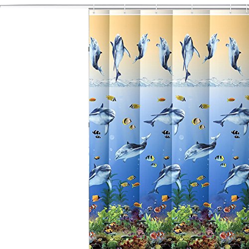 Rick & Julie Plastic Vinyl Premium Quality Luxury Shower Curtain for Bathroom, 70” x 72”, Waterproof, 5.5 Gauge Printed PVC, Mold and Mildew Resistant with 12pcs Rustproof Grommets, Sea Fish