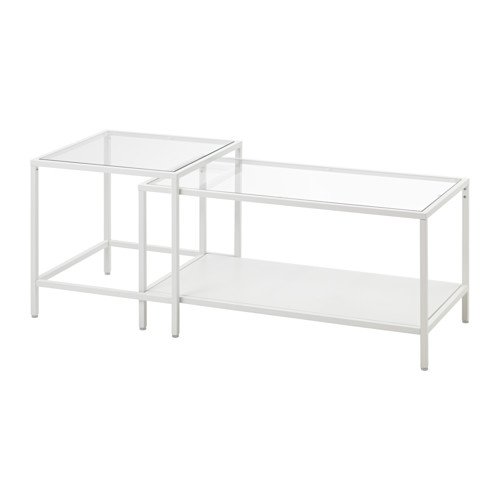 -. Title : Vittsjo Nesting Tables Set of 2 White Glass Adjustable Feet