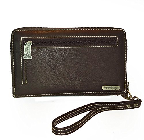 -. Title : Trinity Ranch Floral Tooled Leather Wristlet Wallet -Coffee