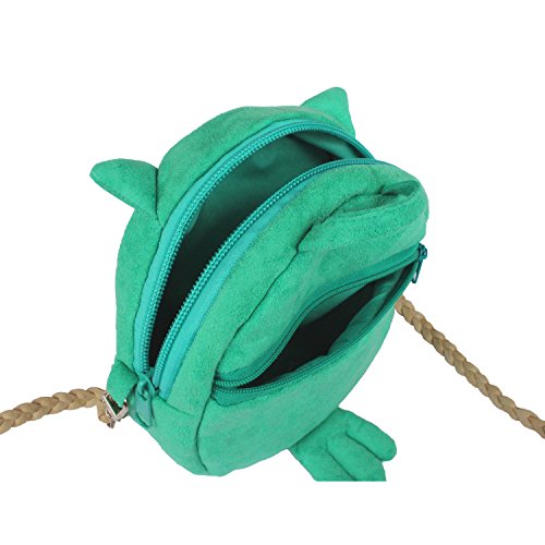 -. Feature : Material: Cotton flannel Color:Green / Dimensions: Backpack,9.4" x 3.1" x 11";24 L x 8 W x 28 H CM;Shoulder purse bag,5.5" x 2.3" x 6.6";14 L x 6 W x 17 H CM / Super cute animal backpack school bag and Shoulder purse bag for girls, with lovely little plush doll design .Fashionable, light-weight, soft and colorful, a perfect gift for your kids / Have enough apace for children's things, like toys, foods, fruits, small books, pens, etc / With adjustable straps to fit your kids' need, suitable for many occasions, like a trip to the zoo, playing at the park, travelling and other outdoor activities