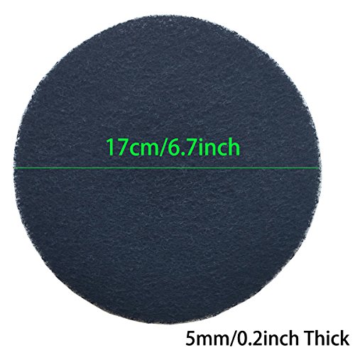 Specifications:? Material: activated-charcoal? Round bin filter: 6.75 in/ 17 cm in Diameter, 5 mm in Thickness Square bin filter: 4.75 in/ 12 cm in Side Length,5 mm in Thickness