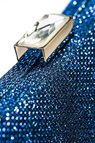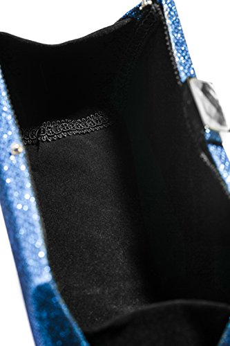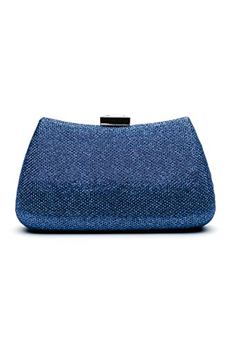 This fabulous clutch purse is exactly what you need for the perfect night out. It will become a versatile and a very useful part of your party / cocktail / evening / prom outfit. Dumpling shape handbag is covered with coarse glitter fabric. It has a convenient rectangular clasp closure which allows you to open and close your clutch smoothly and provides extra security for your belongings. The sparkling rhinestone on the top of the closure adds the chic finishing touch to the evening bag. The inner lining is crafted from rich black velvet fabric with fine embroidery that hides seams and brings you a luxury feeling. All metal parts have high resistance to rust, corrosion, oxidation and tarnishing so your minaudiere clutch will shine as a new one even after years in use. The hard box clutch comes with an optional crossbody chain strap. It gives you a choice to toss your purse over the shoulder and free your hands. Otherwise tuck the chain into the clutch and keep this shiny little purse in your hands. Do not be fooled into thinking that this evening purse is too tiny for your needs. Small and neat by sight the hard case is spacious enough to keep your essentials: a cell phone, home and car keys, ID card, credit cards, some money and make-up.Feature