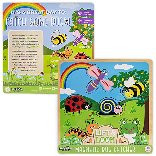Studio : Imagination Generation Publisher : Imagination Generation Binding : Toy Product Description Hold your magnetic bug catcher over the board until you snap up your catch! Gift it a lift, and see what you caught! Was it a ladybug, a busy bee, or maybe even a big, slimy frog? For more fun, make it a game! Close your eyes, and take turns snatching up pieces. Peek underneath to see how many points for catch scored. Or, if you're an extra-good catcher, try to fit the piece back into its place after you've lifted it up. It's not as easy as it looks! Lift Looks are a fun way to learn the names of common creepy crawlies, practice arithmetic, and supercharge dexterity and fine motor skills. When your magnet snags a bug, it makes an exciting SNAP as it jumps up to your wand! Better yet, two wands are included with every game, so they make a great game for two. 0