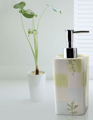 -. Feature : Made of polyresin / High-grade creative gifts / The appearance of tide,simple graceful / Good design and nice look, make your bathroom and your life colorful / Hand washing liquid bottle size:18*7cm, tooth mug size:11*6.5cm, toothbrush holder size:9*12cm, soap dish size:12*3cm