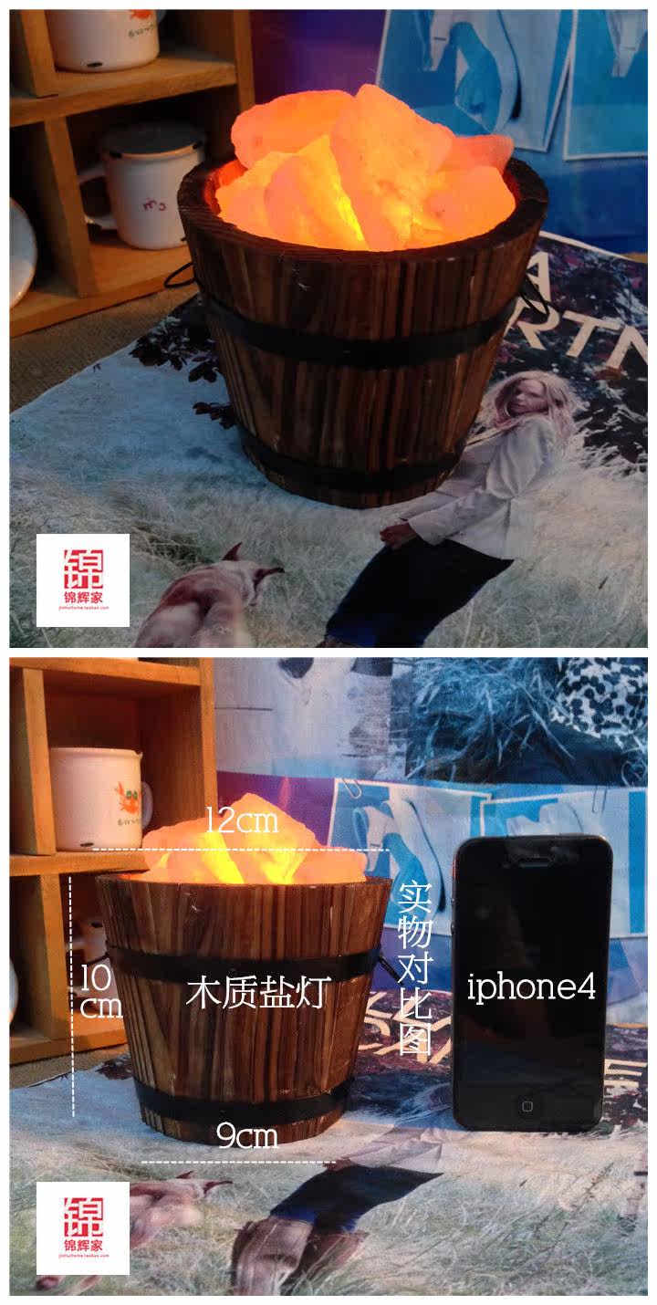 复古怀旧zakka纯手工木质盐灯小夜灯可调光护眼卧室床头创意台灯