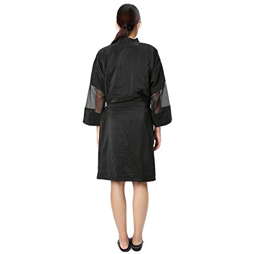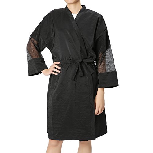 Unisex Black Salon Bathrobe, LuckyFine Waterproof Cape Kimono Robe / Gown Lightweight Water Repellent for Salon, SPA, Beauty Treatments