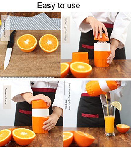 Upintek Lemon Juicer Squeezer, Manual Lid Rotation Citrus Juicer Capacity Container 16 oz.for Fruit Orange Citrus Squeezer Juicer Description: Color:Orange Size:3.6*3.6*7 inches Weight:7.4 ounces Capacity:16.9oz/500ml. How to use the hand orange juicer? 1.Cut the orange half 2.Button up the orange 3.Cover the lid 4.To rotate the lid 5.Leaving only the orange peel 6.Complete Package includes:1 x Manual juicer Note:Diswasher and wash in hot water directly?is not allowed ? 0 |
