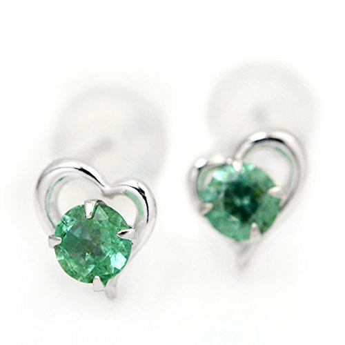 -. Title : K10 ホワイトゴールド オープンハート ピアス スタッドピアス 両耳用ペア 5月誕生石エメラルド