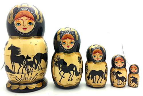 -. Title : Horse Russian Nesting dolls 5 piece Set / 4 3/4" H