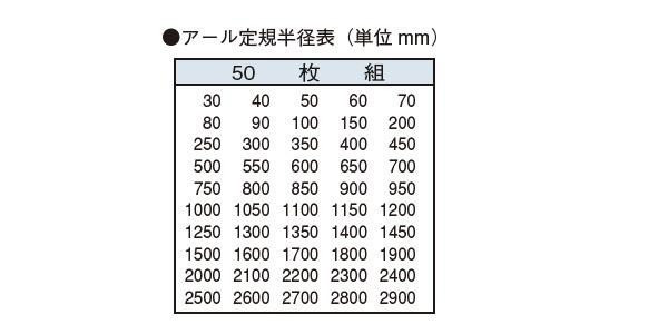 一枚一枚の定規にはそれぞれの曲線を表す弧の半径(アール)がmmで刻印されています。