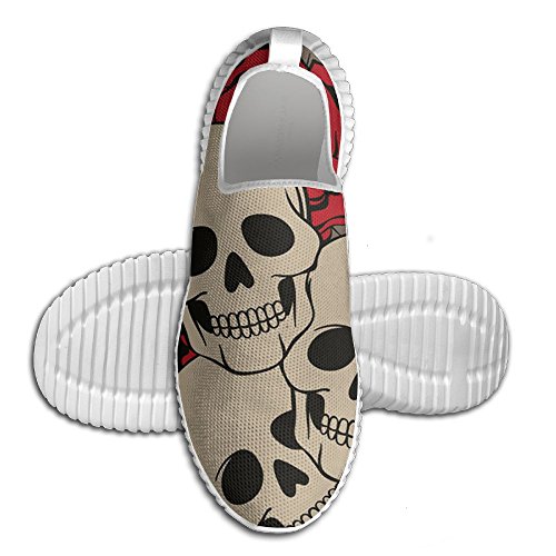 (JIANGY)/Men's/Athletic Outdoor/DIRECT FROM USA/Skull And Rose Pattern Men's Light Weight Breathable Casual Athletic Sneaker Running Shoes