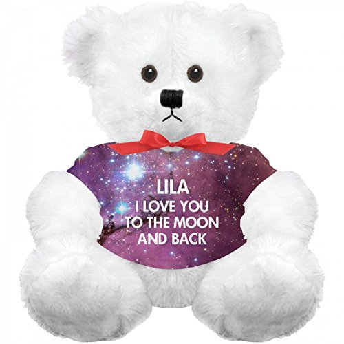 -. Feature : Custom made and P.R.Inted on demand when ordered / Small; sits roughly 7 inches high / Super soft fur / Mini t-shirt is removable / I love you to the moon and back Lila! Get your little one this cute teddy bear to show them just how much you love them. This bear is wearing a galaxy space shirt to emphasize that your love for them is out of this world! Makes a great adorable gift.