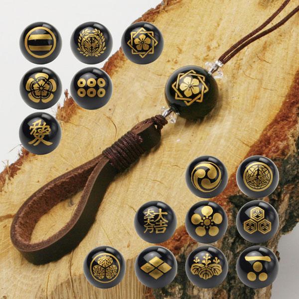日本人なら誰もがあこがれる、戦国武将の生き様。あこがれの武将のようになりたい!戦国武将の家紋を精巧にオニキス玉に彫刻。漆黒の玉に黄金の輝き!威厳があります。武将のような精神が持てるよう御守りに!手触りの良い牛革レザーベルトがオニキス玉とマッチし引き締まったストラップです。