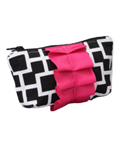 Make your personal items easy to find in your diaper bag with this cosmetic purse by Caught Ya Lookin'. Made with black and white daisies cotton, ribbon ruffle, and satin interior, this cute cosmetic purse is just the right size to hold a few personal items whether in your diaper bag, purse, luggage, or just at your home. Measures 9" x 5". Made in USA.