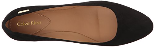 Simple pointed toe flat with a flexible outsole has an over lasted hidden demi wedge for some added lift.
