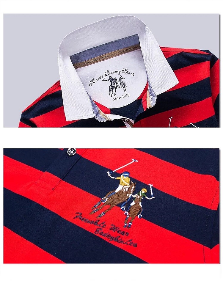 メンズポロシャツ ボーダー柄 メンズ Tシャツ カジュアルシャツ ゴルフシャツ POLO PORO 夏 半袖 アメカジ 刺繍