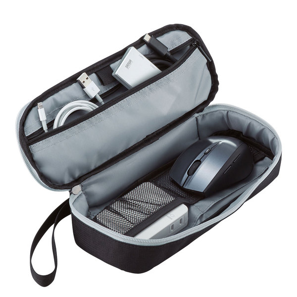 ●モバイルバッテリーやアダプタなどの小物をまとめてすっきり整理収納できるコンパクトポーチ。
