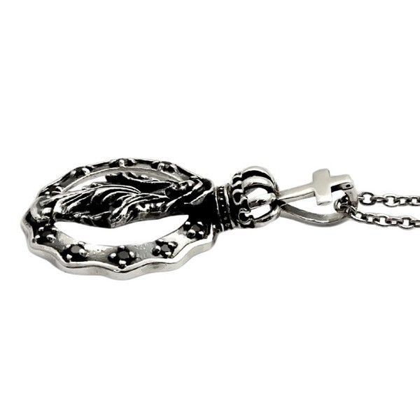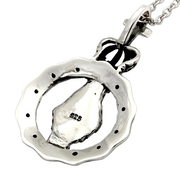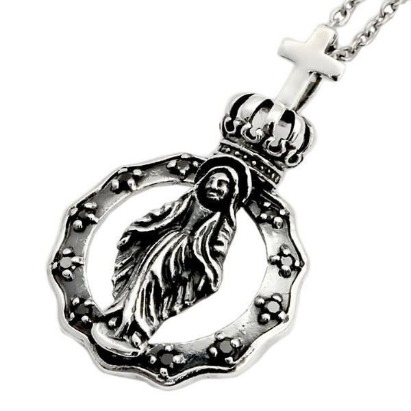 希望のマリアRoyal Jokerホープマリアペンダント。サークルの中に聖母マリアがモチーフとなりブラックCZ(キュービックジルコニア)がセットされたペンダントです。カトリックではなくとも希望が湧いてきそうなアイテム。本物のシルバーだから出せる質感が堪能できるアイテムです。専用のケースが無料で付属するので、プレゼント・ギフトにとってもオススメです。
