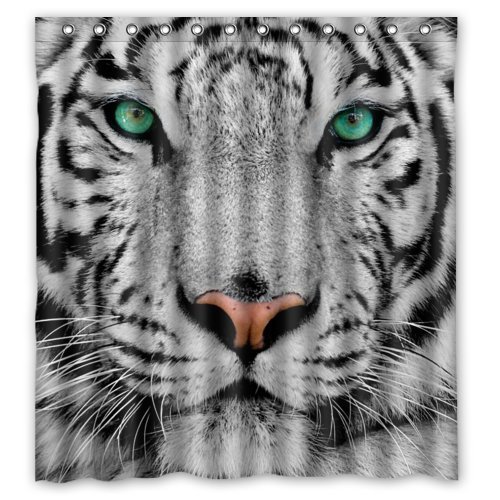 Home&Family Custom Waterproof Bathroom Shower Curtain with Hooks with Cool White Tiger Face Animal Design 66 x 72