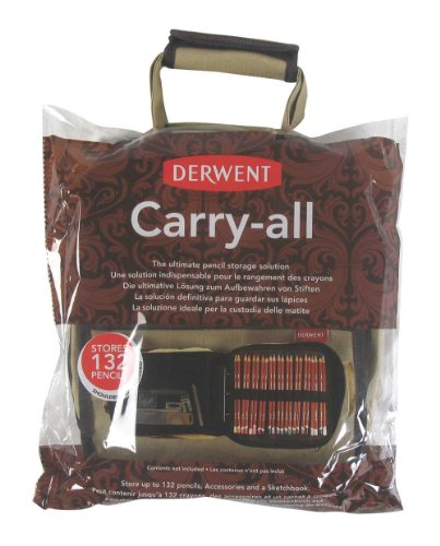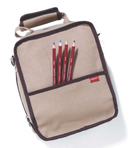 Pack your pencils, stumps, erasers, paper pads and more in this stylish Derwent Canvas Carry-All. It slips easily over your shoulder for easy portability. Take it to art class or on site. The sturdy light brown canvas bag with dark brown trim contains 3 storage sections on 6 binder rings and holds up to 132 pencils and accessories including a size A5 pad. Removable shoulder strap and exterior pocket. 8-1/2 x 10 x 4-1/2 inches.