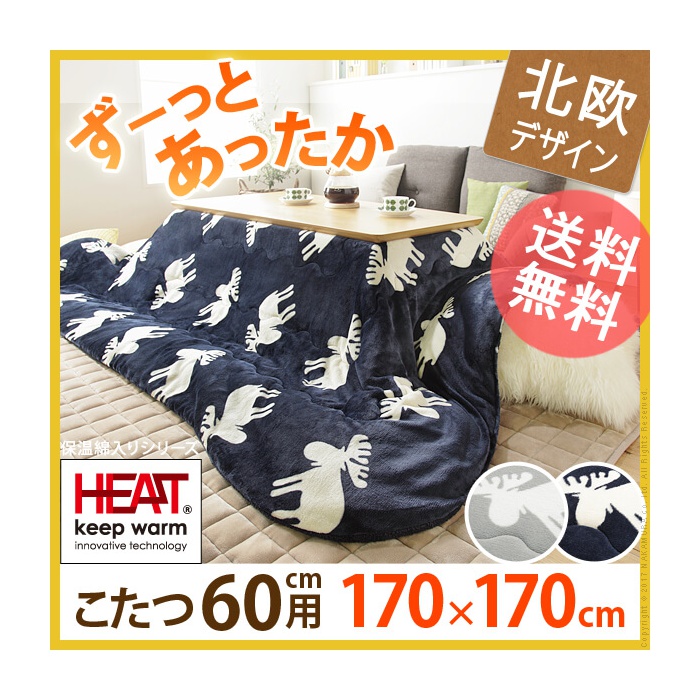 Rakuten 【무료 우송】【내일락 대응】난로 이불 북유럽 정방형 『보온면 들어감 난로 이불 북유럽무늬 타입 〔heat 키 토스〕 170x170cm』 방오가공 중면-안솜 난로용 이불 발수 씻을