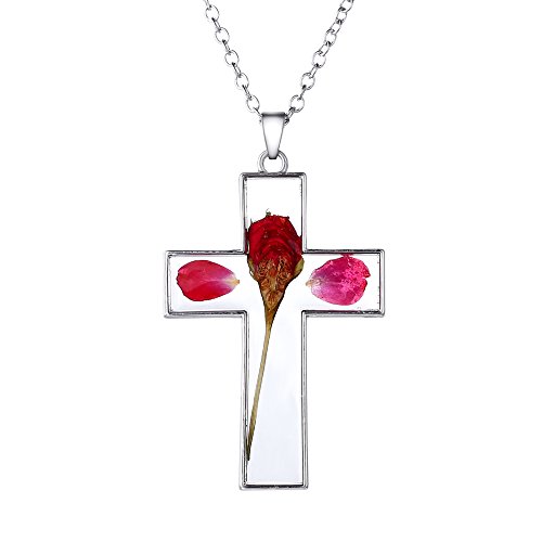 -. Title : Rinhoo Jewelry Real Dry Pressed Flower Cross Pendant Necklace Women Jewelry
