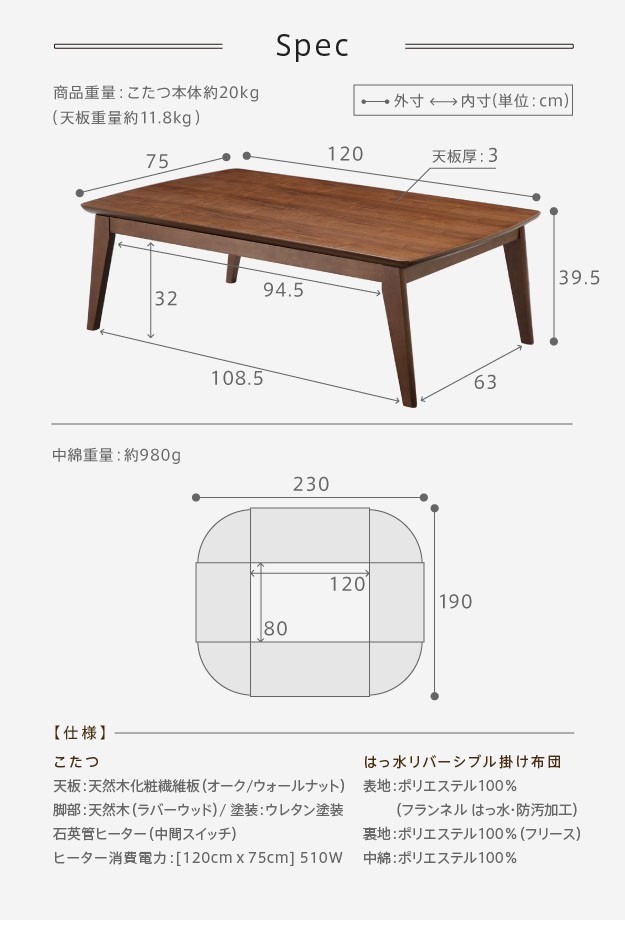 ●やぐら面サイズ:120x80cm