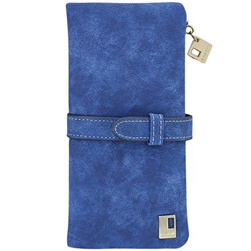 Jastore® Women Ladies Long Matte PU Leather Clutch Wallets Card Holder Purse (Blue)