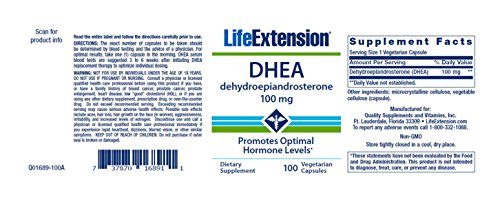 ReleaseDate : 2017-10-27 Studio : Chiropractors Buying Group Publisher : Chiropractors Buying Group Binding : Health and Beauty Product Description Life Extension Dhea 100 Mg 100 v-Capsules s the body's most abundant circulating hormone, but as we age DHEA levels begin to decline. Supplementing for healthy DHEA levels can help support immune function, circulatory health, mood and well-being, healthy body weight and lean muscle mass, libido, and more. 0