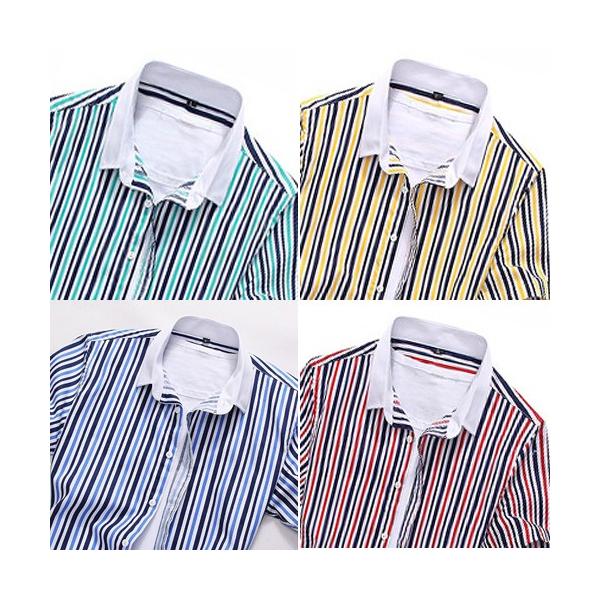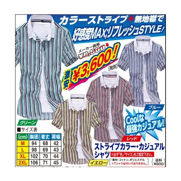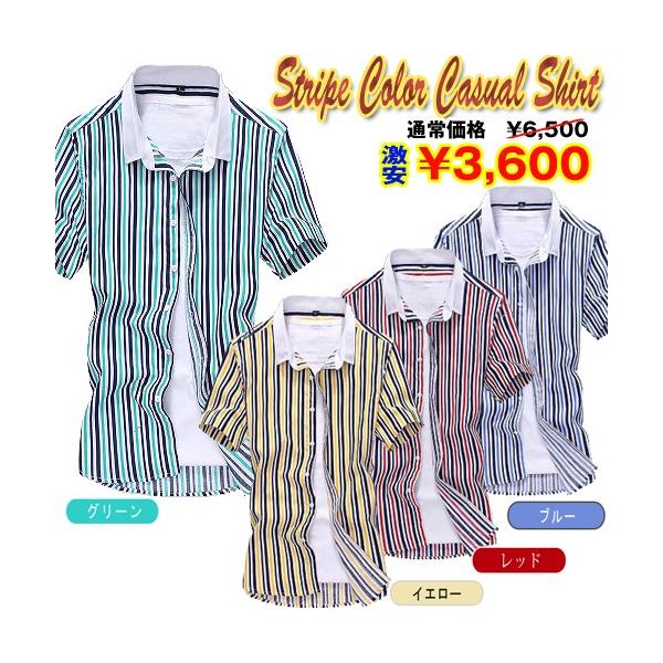 カラーストライプ+無地襟で好感度MAX;リフレッシュSTYLE!通常7,020円(税込)の処、45%OFF!特別価格3,888円にて限定販売!COOLな最強カジュアル登場! スマート&クールな印象を与えるきれいめストライプに、清潔感溢れるホワイト無地襟!今年、大流行のビビッド・ストライプKIMEカラー!! 鮮やかストライプでよりスリムに魅せコーデ!! ※サイズについてのご注意※ 細めのスリムデザインとなっております。 1サイズ大きめのサイズをお勧め致します。