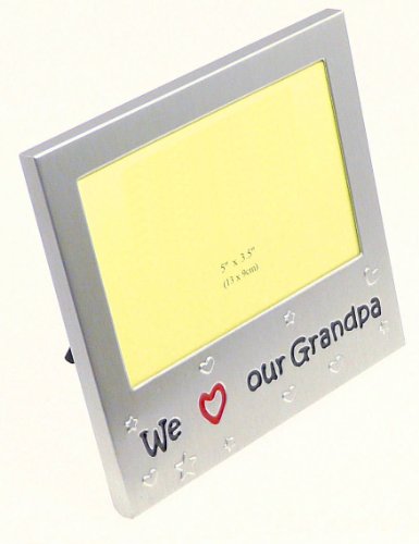 We Love Our Grandpa - Photo Picture Frame Gift - 5 x 3.5 " - Brushed Aluminum Satin Silver Colour. A really beautiful superior quality frame making a great gift from Grandkids for their Grandad's Christmas, his birthday or any occasion.