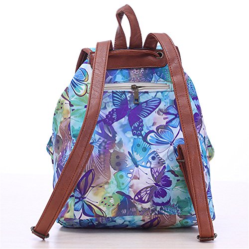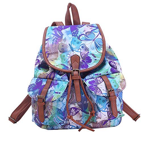 Cfanny Women's Animal Aztec Pattern Buckle Flap Backpack,Blue Butterflies,One Size