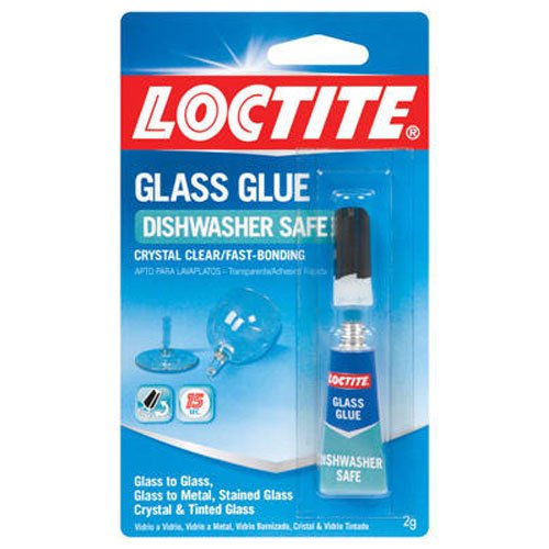 Loctite Glass glue dries clear, sets without clamping and is dishwasher safe