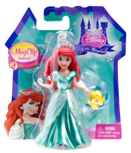 -. Binding : Toy -. Brand : Mattel -. Color : Tahiti Blue -. EAN : 0590291126843 -. Feature : This P.R.Incess sparkles with fashion and friendship! / Ariel is accompanied by her animal friend Flounder / MagiClip fashions make it easy for little hands to change dresses / Includes Ariel doll in Magiclip fashion and pet / A wonderful gift that any girl is sure to love -. Label : Mattel - Import (Wire Transfer) -. LegalDisclaimer : Choking Hazard - Small parts. Not for children under 3 years. -. Manufacturer : Mattel - Import (Wire Transfer) -. Model : Y1088 -. MPN : Y1088 -. PackageQuantity : 1 -. PartNumber : Y1088 -. ProductGroup : Toy -. ProductTypeName : TOYS_AND_GAMES -. Publisher : Mattel - Import (Wire Transfer) -. Size : Standard -. Studio : Mattel - Import (Wire Transfer) -. Title : Disney P.R.Incess Magiclip Ariel and Flounder Doll -. UPC : 746775190750 -. Warranty : No Warranty