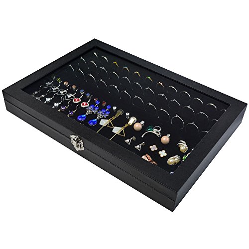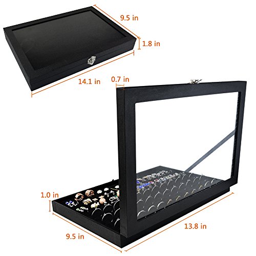 - ENOUGH SPACE TO STORE: Size: 35.3*24.3*2.6 cm(13.8*9.5*1.0 inch)Holds up to 72 Rings. Earrings earrings can be inserted directly, will not loose nor tight, convenient storage, protection of jewelry. This jewelry showcase ideal for travel or put in your bedroom also very elegant for boutique store using.