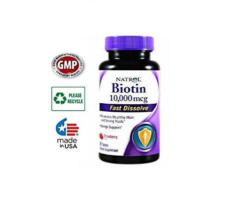 Si usted sufre de una deficiencia de biotina, normalmente experimenta pérdida de cabello y uñas quebradizas. Tomar suplementos de esta vitamina puede ayudar a detener y reverser este proceso. La Biotina ayuda a mantener un cabello sano, hermosa piel y uñas fuertes, además de la producción de energía. Una vitamina del complejo B soluble en agua, biotina es necesaria para el crecimiento celular y el metabolismo de la grasa en aminoácidos. La Biotina ofrece 10.000 mcg para ayudar a asegurar que se cumpla la necesidad diaria de este nutriente esencial. 100% libre de drogas! Dosis máxima! Producto esta hecho en Estados Unitos.