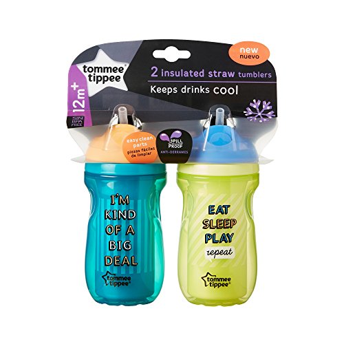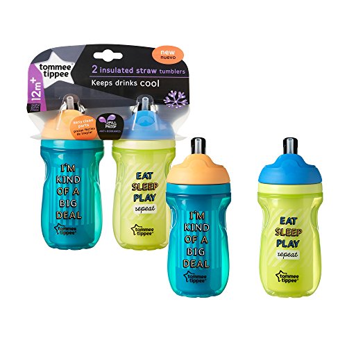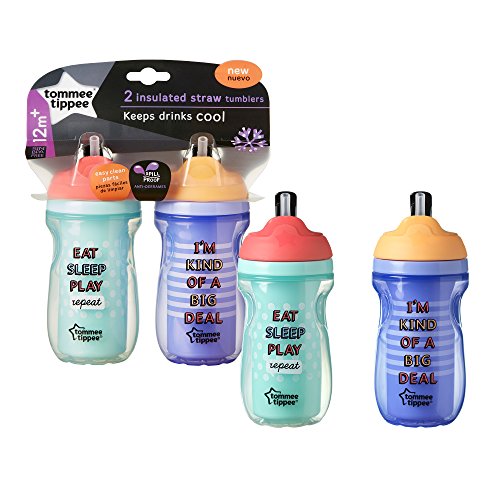 Tommee Tippee Insulated Flippee Straw Cup, 9 Ounce, 2 Count (Colors will vary)