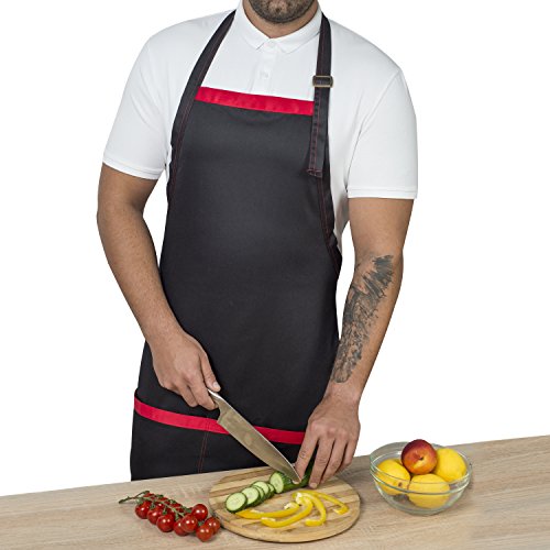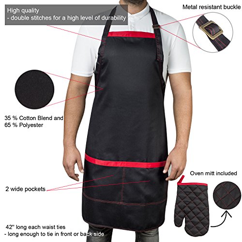 Exquisite design - our BBQ aprons are double stitched with all the edges professionally sewed making sure that it will resist better in time; the mens apron two wide pockets helps you keep cooking & BBQ utensils, phone or recipes handy while cooking or grilling