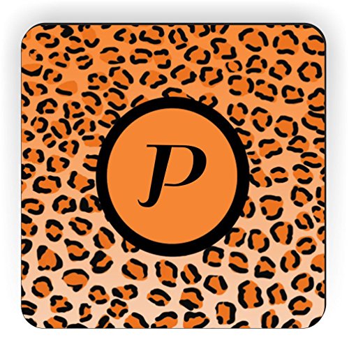 Rikki Knight Letter "P" Initial Orange Leopard Print Monogrammed Design Square Fridge Magnet