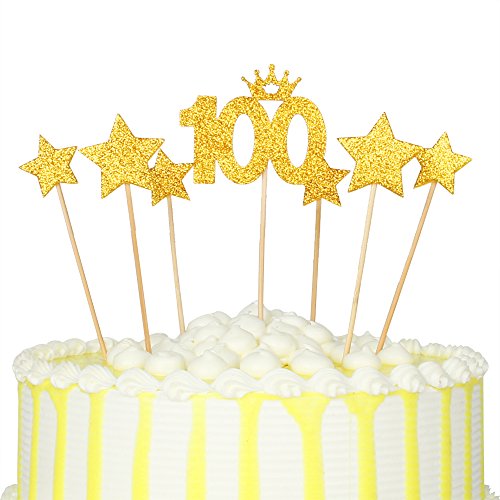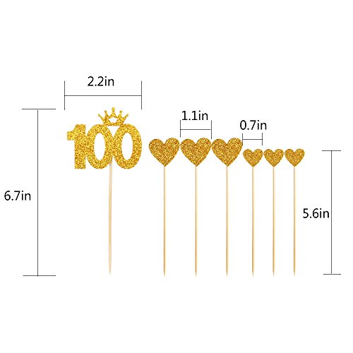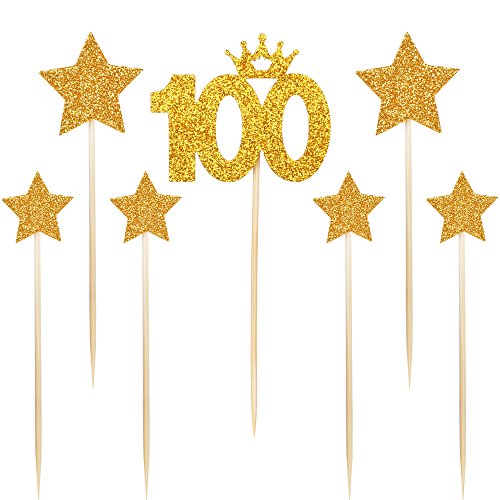 PALASASA Gold glitter 100 Days Cake Topper and pentacle for Parties Baby Happy Birthday,set of 7