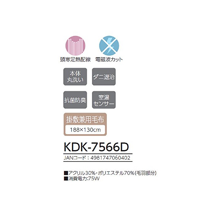 원본상품명: コイズミ 電?掛敷毛布 電磁波カット毛布 188×130cm KDK-7566D