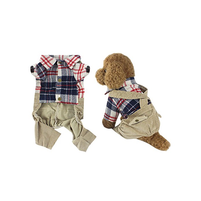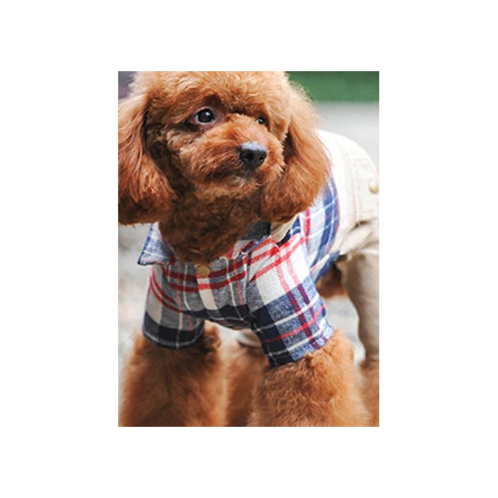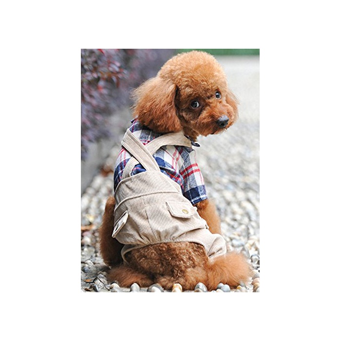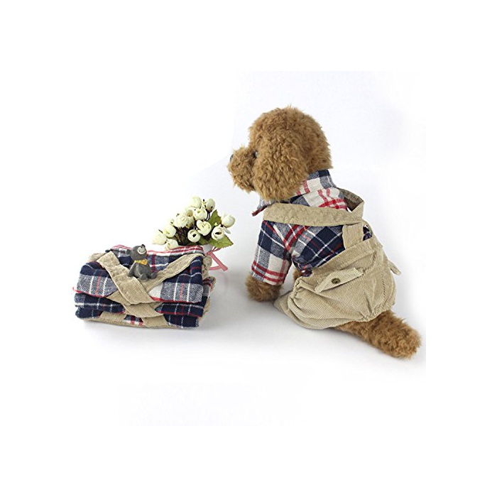 (아스 보그)ASVOGUE 귀엽 소형견 파 pea 체크 프린트 overalls 연결 애완동물복