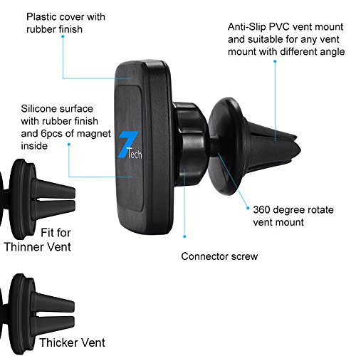 ★ VIGOROUS MAGNETIC HOLDER - The 7TECH car mount phone holder features 6 reinforced powerful magnets (50% stronger than other magnets) that will hold any smartphone such as Apple iPhone 7/7+ iPhone 6/6s/6+, Samsung Galaxy 7/7 edge 6/5/4/3/2, Note 5/4/3, HTC, LG, Nexus, oneplus, Sony, Nokia and all other Android devices