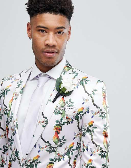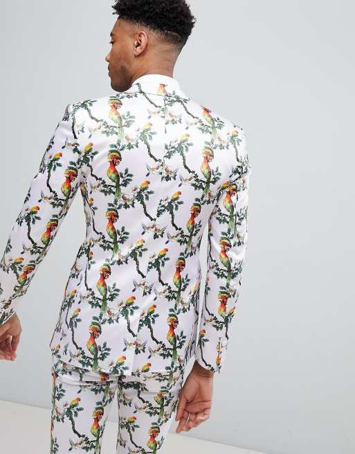 ASOS TALL Super Skinny Blazer With Pink Bird Print