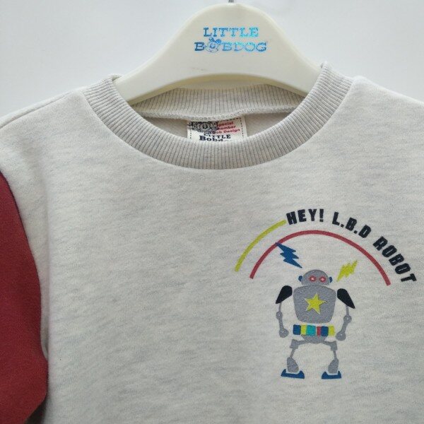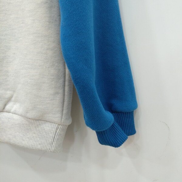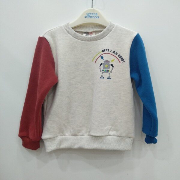 좌우 팔부분 빨강 파랑으로 포인트를 준 귀여운 기모티셔츠입니다