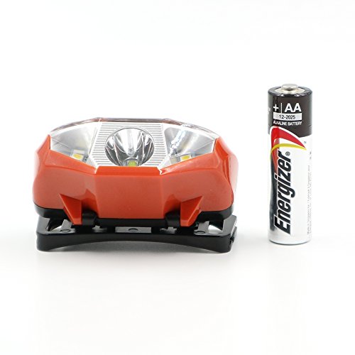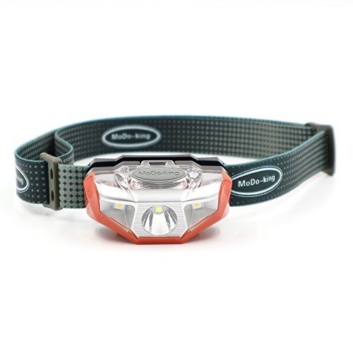 Modoking CREE-XPG 140 Lumens Headlamp, 4 Modes Headlight, One of the Lightest (1.8 oz) Headlamps for Running, Hiking, Camping and Reading. 1 AA Batteries Included (orange)